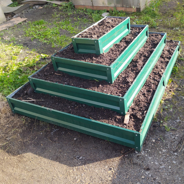 Удлиненные оцинкованные сваи обеспечивают плотную привязку грядки к земле.
